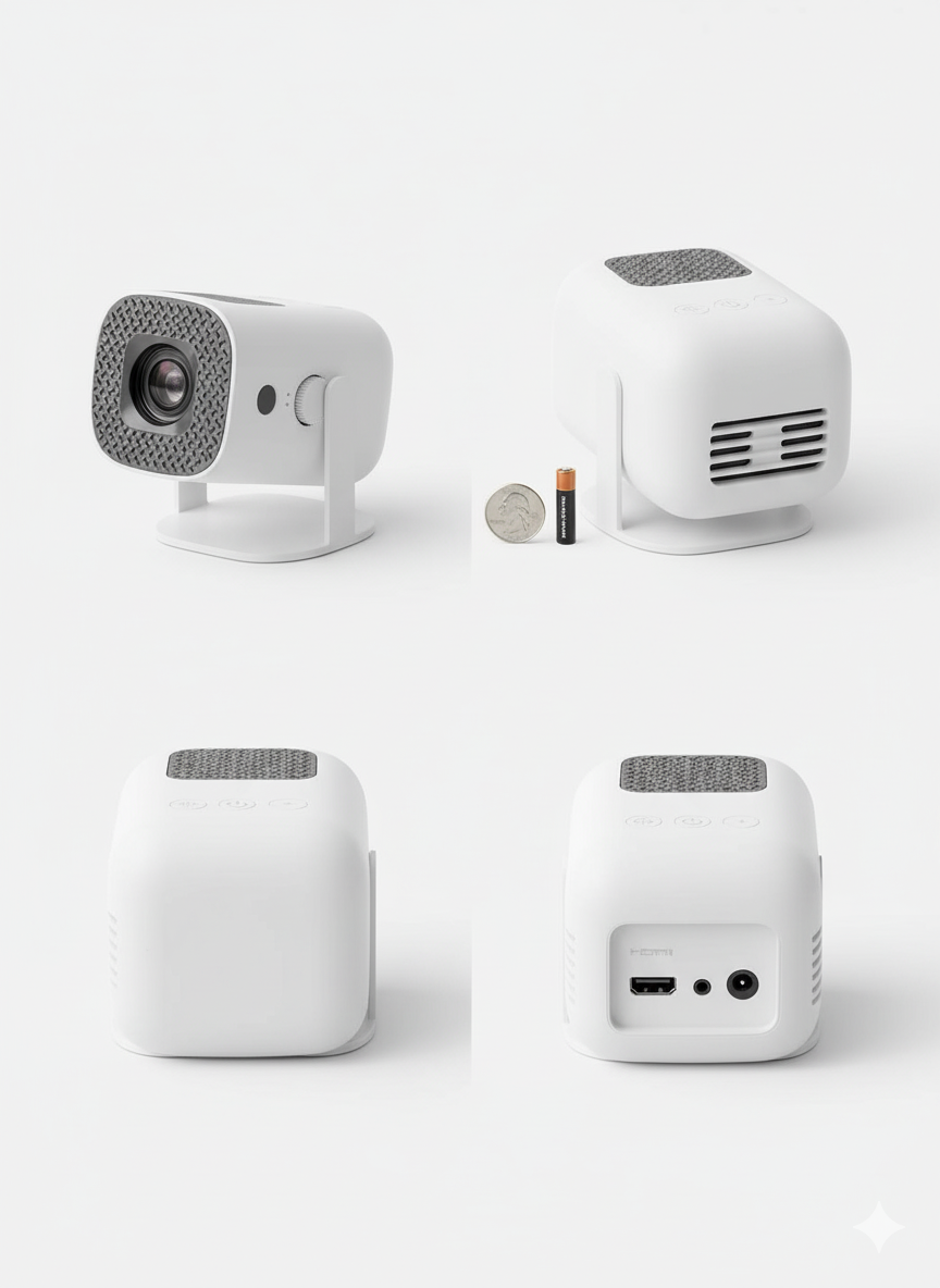 Ten elegancki i ultralekki mini projektor zapewnia wyraźny, kolorowy obraz w dużym formacie, mimo swoich niewielkich rozmiarów. Idealny do filmów, gier, prezentacji i rodzinnych seansów. Wystarczy podłączyć telefon, laptop lub konsolę — i gotowe!